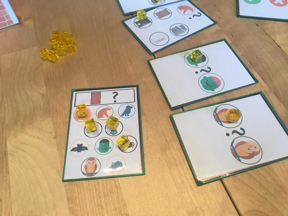 Nous nous lançons donc dans la création d’une piste de déplacement (annexe au plateau de jeu) sur laquelle une sorcière avancerait en direction de sa maison, au fur et à mesure des erreurs faites par les joueurs.